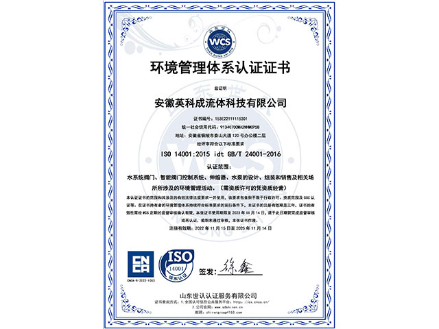 安徽英科成流體科技有限公司位于黃山腳下長江之濱的中國古銅都-安徽省銅陵市。公司注冊(cè)資金1.1億,是國內(nèi)一家專業(yè)致力于給排水行業(yè)系統(tǒng)解決方案、閥門以及智能閥門技術(shù)研發(fā)與生產(chǎn)銷售服務(wù)為一體的企業(yè)。   我們擁有完善的質(zhì)量控制體系和檢測(cè)設(shè)備,公司主要的產(chǎn)品有閘閥、蝶閥、偏心半球閥、液控蝶式止回閥、靜音止回閥、橡膠瓣止回閥、活塞式流量調(diào)節(jié)、錐型閥、節(jié)能型泵控閥、倒流防止器、減壓閥、排氣閥、排泥閥、伸縮器、閘門、啟閉機(jī)等二十多個(gè)系列,可以充分滿足客戶的一站式需求。……